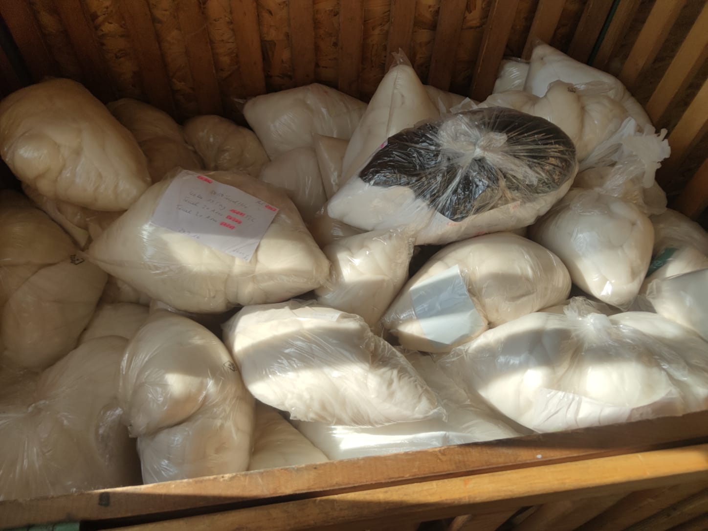 Ihr Lieben, wie einige von euch mit bekommen haben wir räumen eines unserer Lager, Wollschaaarf braucht Platz unsere Platznot ist heute euere Chance auf das Schnäppchen des Tages. ihr wolltet ja alle mal wieder verschiedene Fasern zum Testen zum anfummeln haben, also haben eure Wollschaarfis keine Mühen gescheut und euch Sets gemacht. wie auf den Bildern zu sehen können in den Beutelchen eine Faser drin sein oder auch mehrere. von super fein bis rustikal, von Wolle über Pa oder auch Rovings. lass dich überraschen, wir greifen einfach in die grosse Überraschungstüte und ziehen für dich dein Los. ob Niete oder Hauptgewinn, wer weiss es schon und da es wirklich eine verrückte Lotterie ist kostet dich dein Los 15 Euro das kg Fasern.. no risk No Fun oder? 1 kg beinhaltet ca 2-5 Tütchen aus unserem Lostopf.